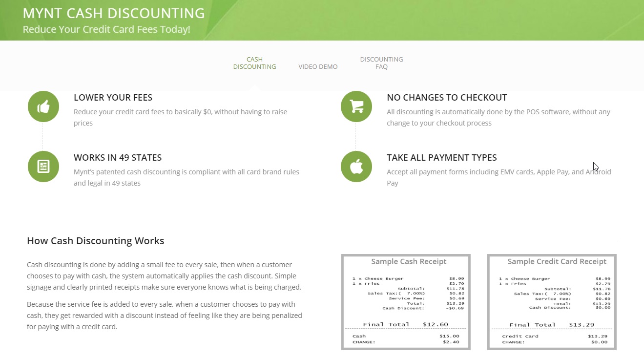 The Mynt POS System is your one stop for a complete solution for your restaurant or retail establishment. Designed to make your life easy, the system comes with the following items and services standard right out of the box: All-in-One Terminal, Integrated MSR, Thermal Receipt Printer and Heavy Duty Cash Drawer.